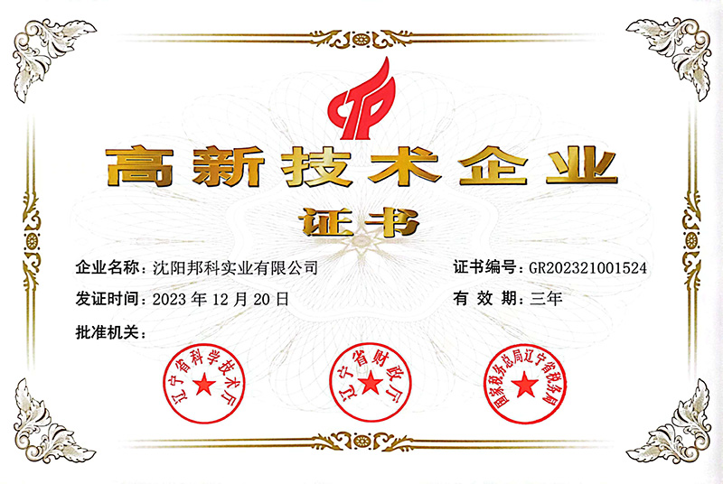 熱烈祝賀沈陽邦科實(shí)業(yè)有限公司榮獲高新技術(shù)企業(yè)